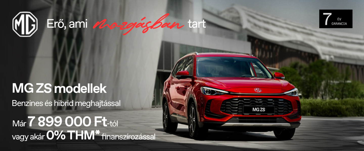 *Az MG ZS kedvezményes ára 2025.10. 01-től a készlet erejéig vagy visszavonásig érvényes. Az árkedvezmény és a kedvezményes finanszírozás nem összevonható.